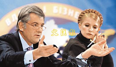 資料圖片:烏克蘭總理季莫申科與總統(tǒng)尤先科