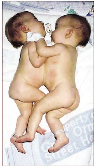據(jù)統(tǒng)計,連體雙胞胎的出生率在新生兒中僅為20萬分之一。喬安最不愿意做的一個抉擇是,在2個寶寶中選擇一個存活,同時犧牲另一個。為此她終日祈禱。1997年4月6日,喬安在曼徹斯特市的圣瑪麗醫(yī)院經(jīng)剖腹產(chǎn)生下一對連體女嬰,取名為尼芙和愛法。喬安回憶稱:“看到2個小寶寶后,我的第一反應是她們是如此正常,僅僅是‘粘連’在一起而已。她們出生時互相擁吻著,其中一個的嘴唇緊貼著另一個,可愛極了。”