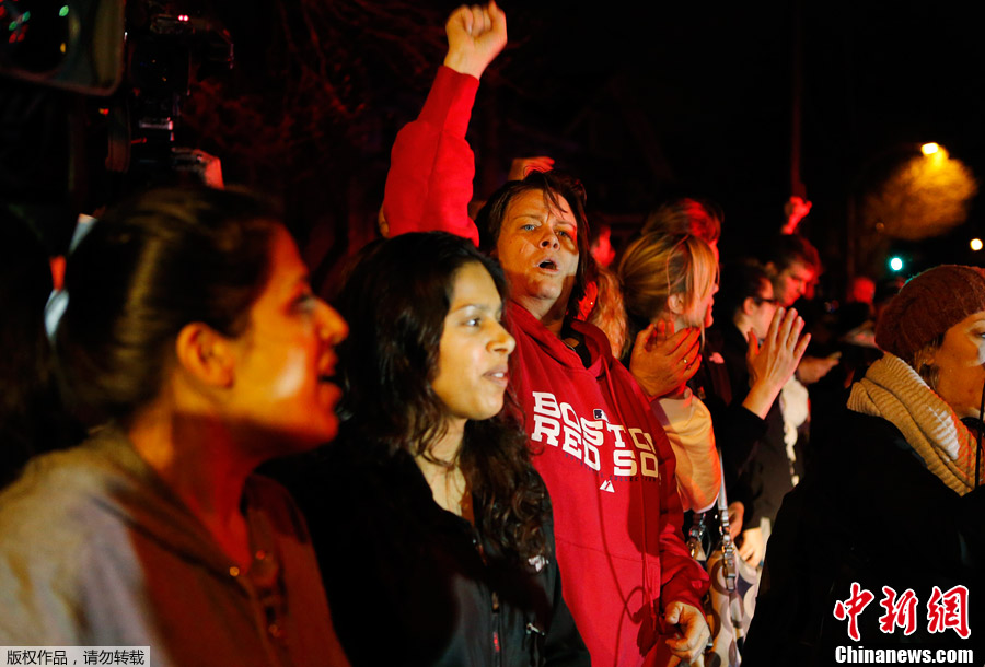 波士頓爆炸案在逃嫌疑人被警方抓獲 民眾祝賀