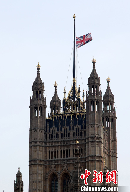 英國議會大廈降半旗對撒切爾夫人表示哀悼