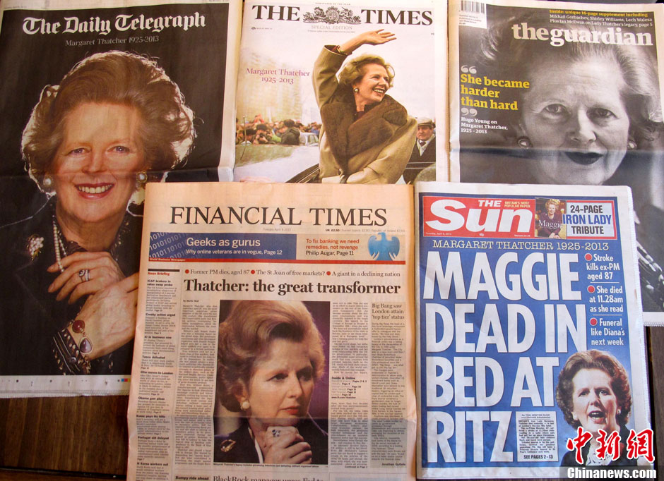 全球媒體關注撒切爾夫人去世消息