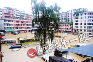 前晚9時許,酉陽縣城開始下起暴雨。昨晨,酉城河水也漫過河床,涌向縣城主街的低洼角落。至上午10時許,縣城東風(fēng)壩、城北車站、小商品一條街、桃花源中路等街道門面進(jìn)水,水深1.5米左右,酉陽報(bào)社被淹,停放在街邊、車站內(nèi)的許多車輛被水淹沒。