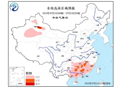 中新網(wǎng)7月13日電 中央氣象臺7月13日18時繼續(xù)發(fā)布高溫藍色預(yù)警:預(yù)計,明天白天,重慶南部、貴州東部、湖南中南部、江西中南部、福建大部、廣東大部、廣西大部、海南北部、臺灣西北部等地有35℃以上高溫天氣,局地溫度將達37~38℃。