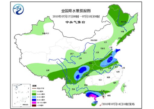 15-19日,淮河流域將出現(xiàn)一次明顯降雨過程,部分地區(qū)有暴雨,局部有大暴雨,強降雨將主要出現(xiàn)在16-17日。過程降雨量一般有50-120毫米,部分地區(qū)有150-200毫米、局部300毫米左右。20日之后,淮河流域將轉為高溫少雨天氣。