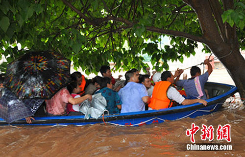 按照“由近及遠(yuǎn),先老人小孩,再大人”的救援思路,20余名群眾在消防官兵的引導(dǎo)、攙扶、背下,于15時(shí)50分被順利救出。此時(shí),洪水仍在不斷上漲。必須加快速度!在當(dāng)?shù)孛癖呐浜舷,消防全勤指揮部將救援人員分為搜救、沖鋒、接應(yīng)、器材準(zhǔn)備四個(gè)小組,并利用沖鋒舟搜尋被困群眾。由于水流太大,消防官兵不能用沖鋒舟從街道中心直線解救被困群眾,只能沿街道兩邊水流相對(duì)較緩處逐步搜尋。消防官兵用喊話、逐屋搜尋等方式,將群眾從水中逐一解救到船上。第一船12名群眾被告順利救出,第二船、第三船……