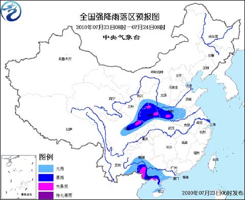 中新網(wǎng)7月23日電 中央氣象臺(tái)2010年7月23日06時(shí)繼續(xù)發(fā)布暴雨黃色預(yù)警: