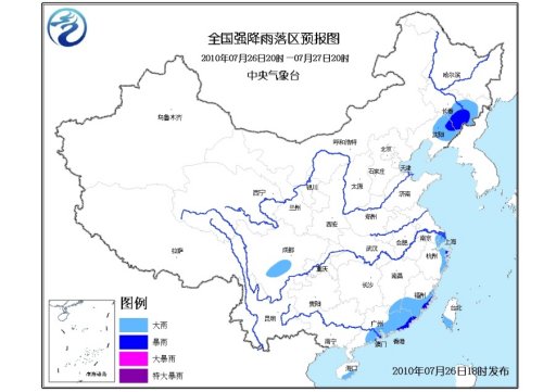 中新網(wǎng)7月26日電 據(jù)中央氣象臺消息,中央氣象臺7月26日18時(shí)繼續(xù)發(fā)布暴雨藍(lán)色預(yù)警:預(yù)計(jì),7月26日20時(shí)到7月27日20時(shí),吉林中東部、遼寧北部、四川盆地南部部分地區(qū)、浙江東部、福建東部和南部、江西南部、廣東中東部、海南南部、臺灣南部等地有大雨或暴雨,其中,浙江東部沿海、福建東部、廣東東部等地的局部地區(qū)有大暴雨;上述局地并伴有短時(shí)雷雨大風(fēng)等強(qiáng)對流天氣。