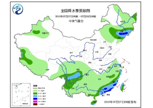 27日08時至28日08時,新疆西北部、西藏大部、甘肅南部、內(nèi)蒙古東南部、東北大部、江淮大部、江南、華南、西南大部等地有小到中雨或陣雨,其中,吉林中南部、遼寧北部、四川西南部、云南西北部、浙江東部沿海、福建東部和南部、廣東中東部、海南南部、臺灣西部等地有大雨或暴雨,浙江東部沿海、福建東部沿海、廣東東部等地的局部地區(qū)有大暴雨;上述局地并伴有短時雷雨大風等強對流天氣。新疆北部、內(nèi)蒙古東部、東北等地有4~5級風。受入海氣旋和西南季風的共同影響,黃海南部海域、東海北部海域?qū)⒂?~8級、陣風9~10級的旋轉風;東海南部海域、臺灣海峽、臺灣以東洋面將有7~8級、陣風9級的西南風;黃海中部海域?qū)⒂?~6級東南風轉6~7級、陣風8級的旋轉風。