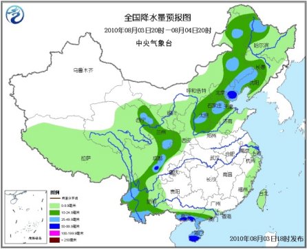 中新網(wǎng)8月3日電 據(jù)中央氣象臺預(yù)報,未來三天,中國大部地區(qū)將會出現(xiàn)小到中雨或陣雨天氣,其中,東北大部、華北東部和南部、黃淮東部、甘肅南部、四川盆地西南部、福建東南部、廣東、廣西南部、云南西部、內(nèi)蒙古東北部和中部偏南地區(qū)、山東東部等地有大雨或暴雨,局地有大暴雨;上述部分地區(qū)并伴有短時雷雨大風(fēng)或冰雹等強對流天氣。