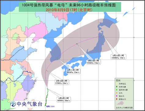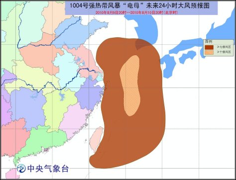 預(yù)計(jì),“電母”將以每小時(shí)25公里左右的速度向偏北方向移動,強(qiáng)度還將有所增強(qiáng);10日下午以后“電母”將轉(zhuǎn)向北偏東方向移動,并逐漸向韓國南部沿?拷