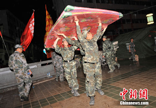 中新網(wǎng)舟曲8月11日電(記者 唐偉杰)在數(shù)十分鐘的密集電閃雷鳴之后,舟曲災區(qū)開始降雨,目前雨勢較小。