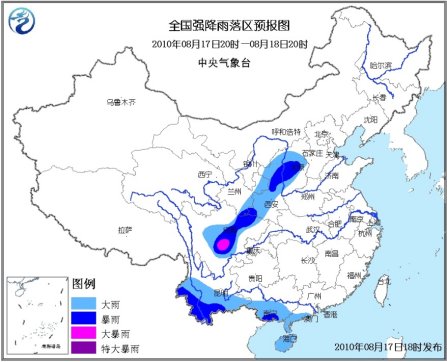 中新網(wǎng)8月17日電 據(jù)中央氣象臺(tái)消息,中央氣象臺(tái)8月17日18時(shí)繼續(xù)發(fā)布暴雨藍(lán)色預(yù)警:8月17日20時(shí)到8月18日20時(shí),四川盆地西部、川西高原東部、甘肅東部和南部、陜西中北部和西南部、山西中部和西部、云南西部和南部、廣西中南部、廣東西南部、海南等地有大雨或暴雨,其中四川盆地西南部的局地有大暴雨;上述局部地區(qū)并伴有短時(shí)雷雨大風(fēng)等強(qiáng)對(duì)流天氣。