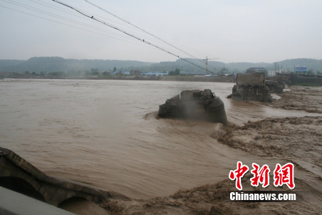 截止19日上午8時,安縣茶坪鄉(xiāng)降雨量達(dá)到149.3毫米、高川鄉(xiāng)降雨量達(dá)到117.3毫米、沸水鎮(zhèn)降雨量達(dá)到150.4毫米、秀水鎮(zhèn)降雨量達(dá)到134.4毫米、桑棗鎮(zhèn)雨量達(dá)到123.6毫米。強(qiáng)降雨導(dǎo)致安昌河、雎水河、秀水河流域河水猛漲,上午9:43分,縣城上游1公里處,花荄先林大橋被特大洪水沖垮。這是自8月2日凌晨黃土大橋垮塌后,在短短的20天內(nèi),安縣第二座被洪水沖垮的跨度在200米以上的大橋。