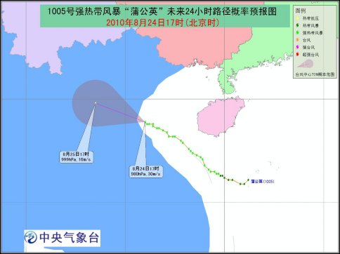 中新網(wǎng)8月24日電 據(jù)中央氣象臺報道,中央氣象臺8月24日18時繼續(xù)發(fā)布臺風(fēng)黃色預(yù)警:今年第5號強熱帶風(fēng)暴“蒲公英”(MINDULLE)的中心24日17時位于越南榮市(Vinh)東北方大約40公里的越南北部近海海面上,就是北緯18.9度、東經(jīng)106.0度,中心附近最大風(fēng)力有11級(30米/秒),中心最低氣壓為980百帕。