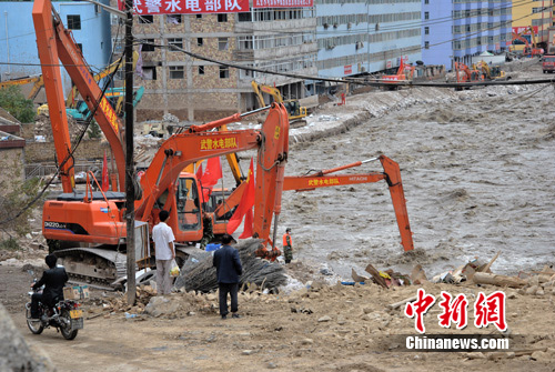 中新網(wǎng)8月24日電 (馬燕清 侯志紅) 8月8日甘肅省舟曲縣的特大山洪泥石流造成穿城而過的白龍江河床抬高,水位提升,淹沒了大半個(gè)縣城。如今洶涌的白龍江又有了新變化。