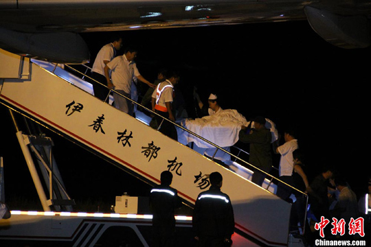 據(jù)了解,空難發(fā)生后,伊春當?shù)亓⒓唇M織搶救人員趕往現(xiàn)場,同時從佳木斯、哈爾濱等地增調救護車和醫(yī)療人員趕往事發(fā)現(xiàn)場。在傷者被送到當?shù)厮募裔t(yī)院后,當?shù)亟M織100余名醫(yī)療專家進行救治,每一名傷者都有一名專職醫(yī)護人員負責看護。但是,當?shù)氐尼t(yī)療水平和藥品供應無法滿足目前的需求,在將一些重傷者用飛機送走轉院的同時,衛(wèi)生部派出專家趕往伊春,幫助處理指導工作。