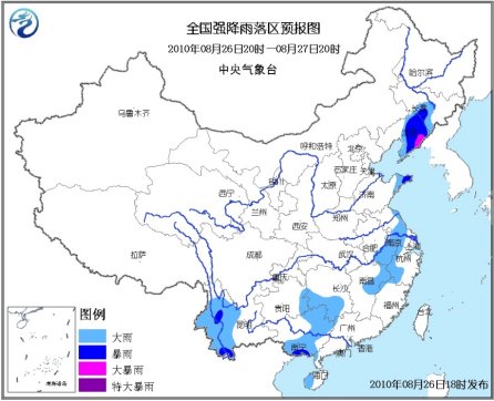 中新網(wǎng)8月26日電 據(jù)中央氣象臺(tái)報(bào)道,中央氣象臺(tái)8月26日18時(shí)發(fā)布暴雨藍(lán)色預(yù)警:8月26日20時(shí)到8月27日20時(shí),吉林南部、遼寧中東部、山東半島東部、江蘇東部和南部、安徽南部、浙江西部、江西東北部以及湖南南部、貴州東部廣西中東部、海南西部、云南中西部等地有大到暴雨,其中遼寧東部的局部地區(qū)有大暴雨,上述局地并伴有短時(shí)雷雨大風(fēng)等強(qiáng)對(duì)流天氣。