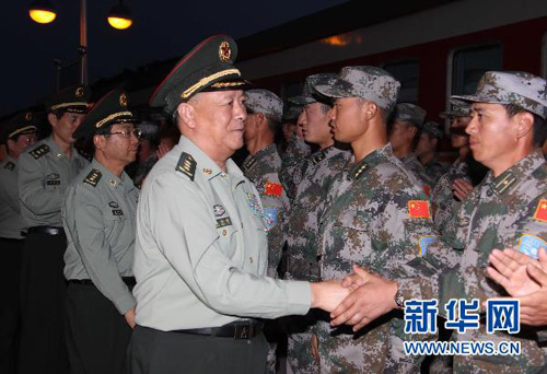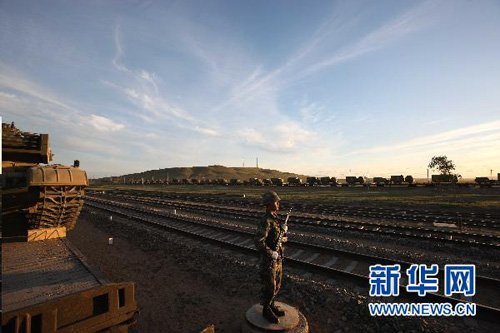參加“和平使命-2010”上海合作組織成員國武裝力量聯(lián)合反恐軍事演習(xí)的中方陸軍戰(zhàn)斗群第一梯隊正乘坐軍列一路西行,前往位于哈薩克斯坦南部的演習(xí)地域。
