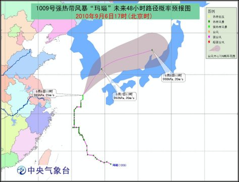 由于“瑪瑙”已遠離我國近海,對我國海區(qū)的影響趨于減弱,因此解除臺風藍色預(yù)警。但受“瑪瑙”、西南季風和南下冷空氣的共同影響,9月6日20時到7日20時,渤海灣、渤海海峽、黃海北部部分海域、黃海中部和南部的偏東海域、東海東北部、臺灣以東洋面將有6-8級大風,“瑪瑙”中心經(jīng)過的附近海域或地區(qū)的風力可達9-10級,陣風11-12級。
