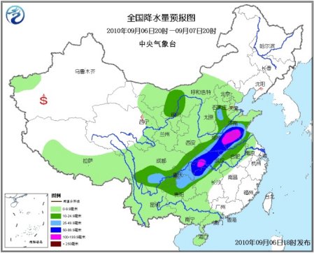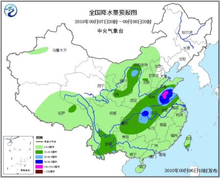 中新網(wǎng)9月6日電 據(jù)中央氣象臺(tái)報(bào)道,未來(lái)三天,全國(guó)降水范圍較大,其中,山東中南部、安徽北部、江蘇北部、河南東部和南部、湖北中西部、重慶中東部、貴州北部、湖南西北部以及川西高原東南部、四川東部、甘肅南部、陜西西南部、內(nèi)蒙古河套地區(qū)、河北西南部等地有大雨或暴雨,湖北西南部、河南中部偏東地區(qū)、山東西南部、安徽北部、江蘇西北部等地局部有大暴雨,上述部分地區(qū)并伴有短時(shí)雷雨大風(fēng)等強(qiáng)對(duì)流天氣。