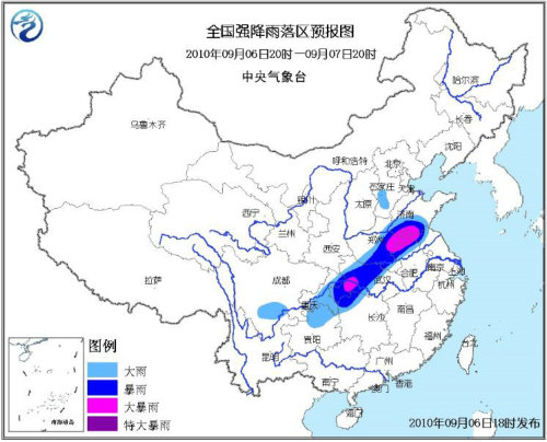 中新網(wǎng)9月7日電 據(jù)中國(guó)氣象局網(wǎng)站報(bào)道,6日,中國(guó)黃河流域到長(zhǎng)江流域之間的大部分地區(qū)出現(xiàn)明顯降雨天氣。預(yù)計(jì),6日夜間到7日白天,河南、安徽、江蘇及湖北局地將有大暴雨。