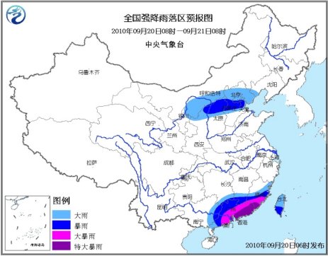 中新網(wǎng)9月20日電 中央氣象臺9月20日06時繼續(xù)發(fā)布暴雨藍(lán)色預(yù)警:9月20日08時到21日08時,浙江東南部、福建東部和中南部、江西南部、湖南東南部、廣東大部、廣西東部、臺灣等地將有大到暴雨,福建東南部、廣東中東部等地的部分地區(qū)有大暴雨,局地有特大暴雨。