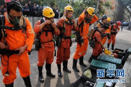 河南平禹煤電有限公司四礦并不寬敞的院子里,密密麻麻地停放著近百輛警車、救護車、救援車。30多名救護人員在井口整裝待命,隨時準備替換井下正在超負荷工作的礦山救護隊員。他們6點多鐘就沖向事故現(xiàn)場,至今仍在全力搜尋17名生死不明的礦工。