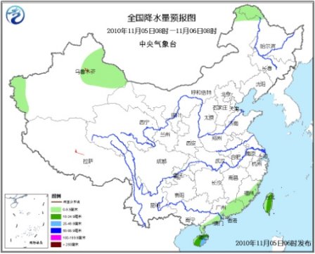 另外,未來三天,受冷空氣影響,新疆大部、西北地區(qū)中東部、內(nèi)蒙古大部、華北大部將先后有4~6℃的降溫,部分地區(qū)降溫可達8~10℃,上述地區(qū)并伴有4~6級的偏北風,新疆山口地區(qū)風力可達7~8級。受冷空氣和熱帶系統(tǒng)的共同影響,華南沿海、海南、臺灣有小到中雨或陣雨,其中,海南東部的部分地區(qū)有大雨。