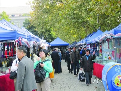 昨天上午,記者來到山巷廣場,發(fā)現(xiàn)這里帳篷如林,各種奇石玉器琳瑯滿目,眾多市民參觀購物。一位來自遼寧的王姓商販告訴記者,是一位姓劉的人主動發(fā)短信組織他們來此擺攤設(shè)點進行玉器展銷的,每個攤位交納1000元。記者在一位遼寧女攤主的手機上看到該短信:“鎮(zhèn)江首屆奇石玉器展在大西路山巷廣場舉辦,緊鄰富人區(qū),展費1200元”。攤主們說,他們已經(jīng)將每個攤位一至兩千元的租金交給了劉某,劉某說罰款已交給城管了,讓他們放心大膽擺攤。