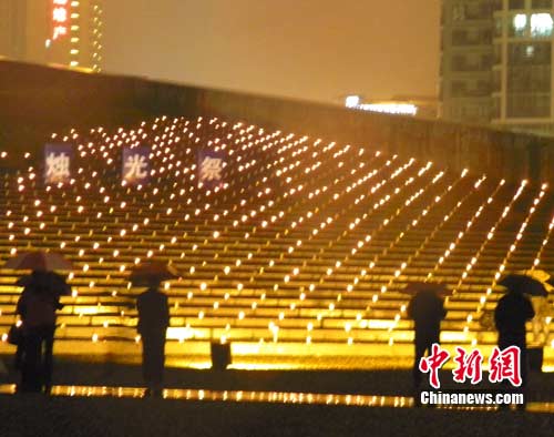 中新網(wǎng)南京12月12日電 (朱曉穎 申冉 孫翔鳴)“我們共風(fēng)雨,我們共追求,我們珍存同一樣的愛,無論你我可曾相識,無論在眼前在天邊,真心的為你祝愿……”12日晚間,在侵華日軍南京大屠殺遇難同胞紀(jì)念館集會廣場上,南京和平鴿藝術(shù)團(tuán)的孩子們的歌聲回響其間,3000支紅燭點(diǎn)亮,悼念30萬遇難同胞。