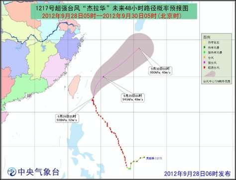 受“杰拉華”和南下冷空氣的共同影響,28日08時至29日08時,臺灣以東洋面、巴士海峽、南海東北部海面、臺灣海峽、東海大部海面將有7~10級大風,陣風可達11~12級,其中,巴士海峽、臺灣以東洋面、東海南部的部分海域的風力有11~13級,陣風可達13~15級,“杰拉華”中心經(jīng)過附近海域的風力有14~16級,陣風可達16級以上;臺灣東部和北部將有大到暴雨,部分地區(qū)有大暴雨或特大暴雨。
