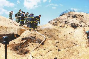 6月1日,消防官兵在中儲糧林甸直屬庫清理火災(zāi)事故現(xiàn)場。