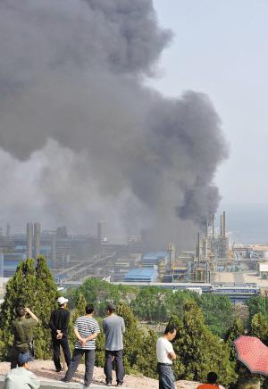 6月2日,中石油大連石化分公司廠區(qū)因爆炸冒出滾滾黑煙。