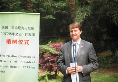今年,在尼克松誕辰100周年之際,他的外孫考克斯來(lái)到中國(guó),在杭州植物園內(nèi)外祖父送來(lái)的北美紅杉旁,又種下了兩棵南方紅豆杉。