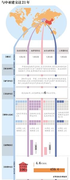 中國(guó)是最早承認(rèn)中亞五國(guó)獨(dú)立并與之建交的國(guó)家之一,也是較早在中亞各國(guó)設(shè)立大使館的國(guó)家之一。江澤民主席和胡錦濤主席都曾經(jīng)訪問(wèn)過(guò)中亞。