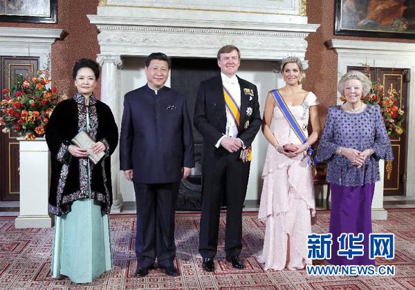 3月22日,國家主席習(xí)近平在阿姆斯特丹會見荷蘭國王威廉-亞歷山大。當晚,威廉-亞歷山大國王在王宮為習(xí)近平舉行盛大國宴。威廉-亞歷山大國王、馬克西瑪王后、貝婭特麗克絲前女王共同迎接習(xí)近平和夫人彭麗媛到來。新華社記者鞠鵬攝