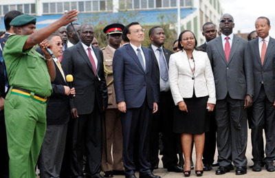 中新網(wǎng)內(nèi)羅畢5月11日電(記者 郭金超) 李克強(qiáng)11日在肯副總統(tǒng)盧托陪同下到國家青年服務(wù)隊參觀。這里供學(xué)員實(shí)習(xí)的鉆井、起重、消防等裝備不少來自中國。李克強(qiáng)攀上一輛移動維修車查看并詢問維護(hù)等服務(wù)情況。他說,要用好中國裝備和技術(shù)優(yōu)勢,幫助非洲青年提升職業(yè)技能,促當(dāng)?shù)鼐蜆I(yè)。