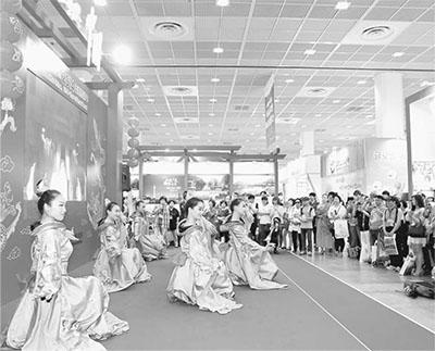 中韓兩國一衣帶水,文化交往源遠流長。圖為不久前在首爾舉行的第二十九屆韓國國際旅游展上,韓國參觀者觀看中國展臺的舞蹈表演。