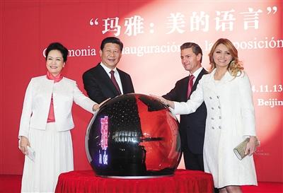 據(jù)新華社電 習(xí)近平13日同培尼亞共同出席在國(guó)家博物館舉行的“瑪雅:美的語(yǔ)言”文化展開(kāi)幕式。