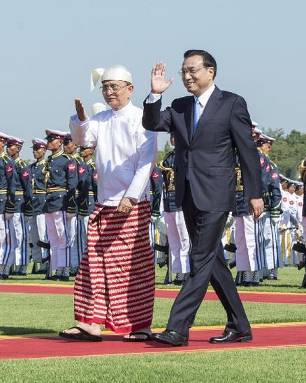 11月14日,緬甸總統(tǒng)吳登盛為李克強總理舉行隆重歡迎儀式。