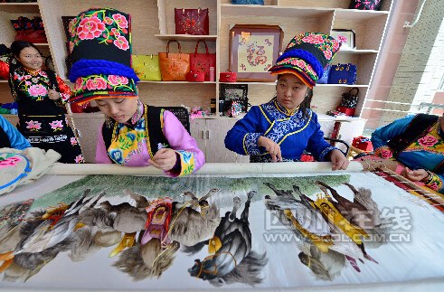 記者:你們的繡品是通過公司在市場銷售,你們準(zhǔn)備一直做這份工作嗎?