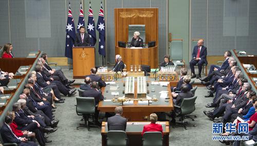 11月17日,國(guó)家主席習(xí)近平在澳大利亞聯(lián)邦議會(huì)發(fā)表題為《攜手追尋中澳發(fā)展夢(mèng)想-并肩實(shí)現(xiàn)地區(qū)繁榮穩(wěn)定》的重要演講。新華社記者謝環(huán)馳攝