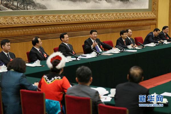 3月7日,中共中央總書記、國家主席、中央軍委主席習(xí)近平參加十二屆全國人大四次會議黑龍江代表團(tuán)的審議。 新華社記者 蘭紅光 攝