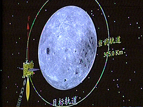 今日8時24分,嫦娥一號衛(wèi)星主發(fā)動機(jī)點火,實施第三次近月制動。8時35分,嫦娥一號衛(wèi)星主發(fā)動機(jī)關(guān)機(jī),第三次近月制動結(jié)束。衛(wèi)星已成功進(jìn)入周期127分鐘、高度200公里的極月圓軌道,從而正式進(jìn)入科學(xué)探測的工作軌道。