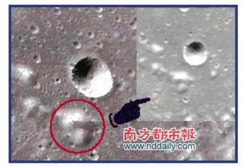 月照公布當(dāng)天,即有網(wǎng)友發(fā)帖《我認(rèn)為嫦娥拍到的圖片是假的》。用GoogleMoon(NASA提供月球照片)上找到的月球相同區(qū)域照片與嫦娥照片進(jìn)行對(duì)比,嫦娥照片旋轉(zhuǎn)20度后與GOOGLE圖片比較相似。