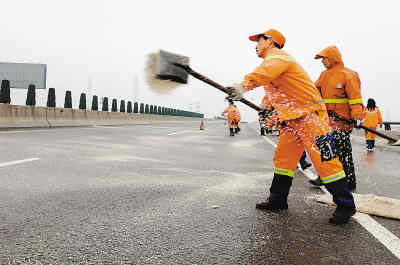 在寒風(fēng)中撒了3個(gè)小時(shí)鹽的長(zhǎng)潭高速公路養(yǎng)護(hù)工劉建軍感到既冷又累,他說:“靠人工,終究不是辦法!