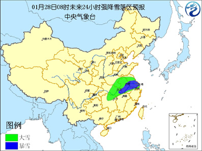 中新網(wǎng)1月28日電 中央氣象臺(tái)今天早晨六點(diǎn)鐘繼續(xù)發(fā)布暴雪紅色警報(bào):受冷暖空氣的共同影響,預(yù)計(jì)今天白天到夜間,湖南北部、湖北東部、河南東南部、安徽大部、江蘇大部以及浙江西北部等地有大雪,其中,安徽中南部、江蘇中南部、湖北東南部等地的部分地區(qū)有暴雪。