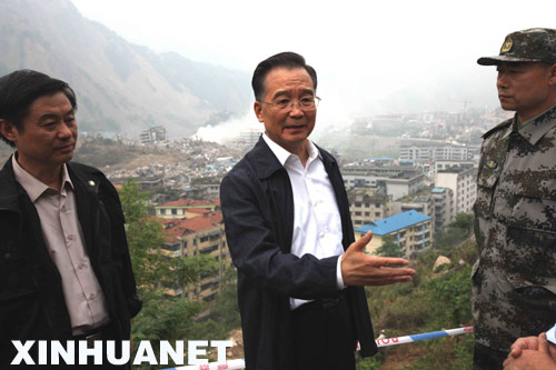 下午5時(shí)10分許,一抵達(dá)綿陽機(jī)場(chǎng),溫家寶總理就和國務(wù)院副總理回良玉、國務(wù)委員馬凱以及總指揮部其他成員一起改乘直升機(jī)前往北川察看唐家山堰塞湖,看望禹里鄉(xiāng)準(zhǔn)備轉(zhuǎn)移的群眾,并前往在地震中遭受嚴(yán)重毀壞的北川縣城,了解受災(zāi)情況。