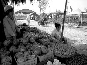 劉蓉擺起了賠本的水果攤兒。