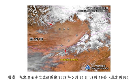 據(jù)監(jiān)測,昨天(5月26日)下午至今天早晨,受蒙古氣旋和冷空氣的共同影響,內(nèi)蒙古中部和東部偏南地區(qū)出現(xiàn)了大范圍的揚沙和沙塵暴天氣,其中,二連浩特能見度只有400米,蘇尼特左旗和那仁寶力格能見度同為600米,烏拉蓋、東烏珠穆沁旗、蘇尼特右旗、阿巴嘎旗和克什克騰旗能見度為700-800米。